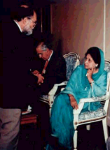Gil Steil answers a question posed by Prime Minister Zia (Bangladesh) during a break in a Summit meeting to address iodine deficiency disease in the six countries of South Asia